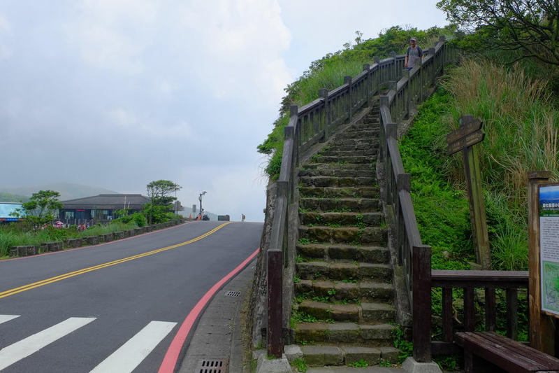 車道走到下圖這個位置是我地圖畫的小2 ,路標旁有階梯,我們沿著階梯下去
